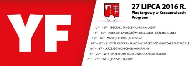 Środa to dzień Festiwalu Młodych. Na placu targowym między 13:30 a 22:00 wystąpią laureaci przeglądu piosenki religijnej, krzeszowicki chór Allegria, Lucyna Ordon-Klimczak z Grzegorzem Klimczakiem, Krzeszowicki Chór Kameralny oraz zespoły – bluesowy Krecia Robota oraz Żuki.