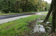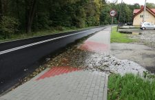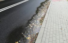 Po otwarciu węzła autostradowego chodnik miał zapewnić mieszkańcom bezpieczeństwo. Na razie „nawadnia” asfaltową nawierzchnię, która po pierwszych przymrozkach może zamienić się w lodowisko. Woda spływa z sąsiadującej z chodnikiem działki. Rozlewa się obok tworząc bajoro, a nadmiar, razem z jesiennymi liśćmi spływa drogą powiatową na długości kilkunastu metrów. Odwodnienie chodnika znalazło się w warunkach zamówienia. Jak widać gorzej z jego realizacją. Za ponad 146 tysięcy w ramach Inicjatyw Samorządowych jest pobocze z kostki brukowej i alternatywna lekcja WF-u. Każdy z mieszkańców może już zacząć trenować skok w dal.