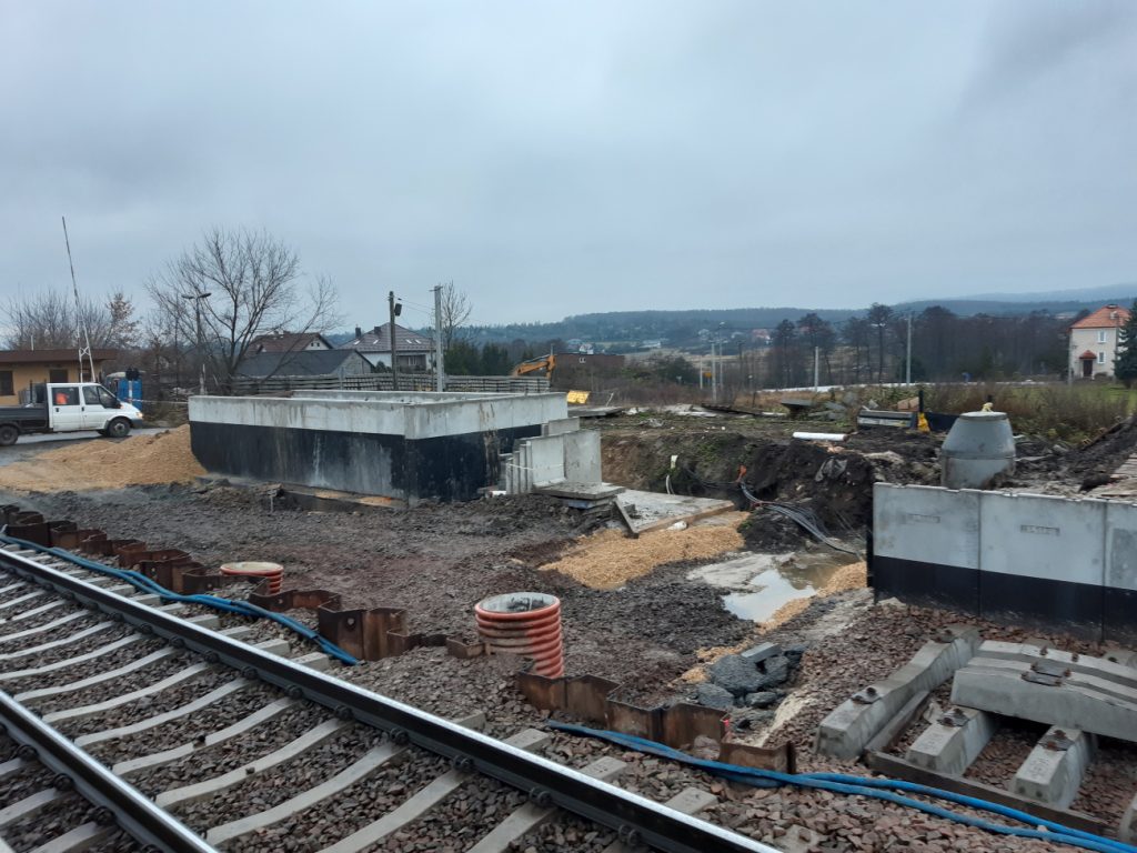 Przejazd w ciągu ulicy Kolejowej ma zostać zamknięty na tydzień. Przy stacji trwają prace związane z budowę podziemnego przejścia i pierwszego peronu, na którym montowane są wiaty przystankowe.