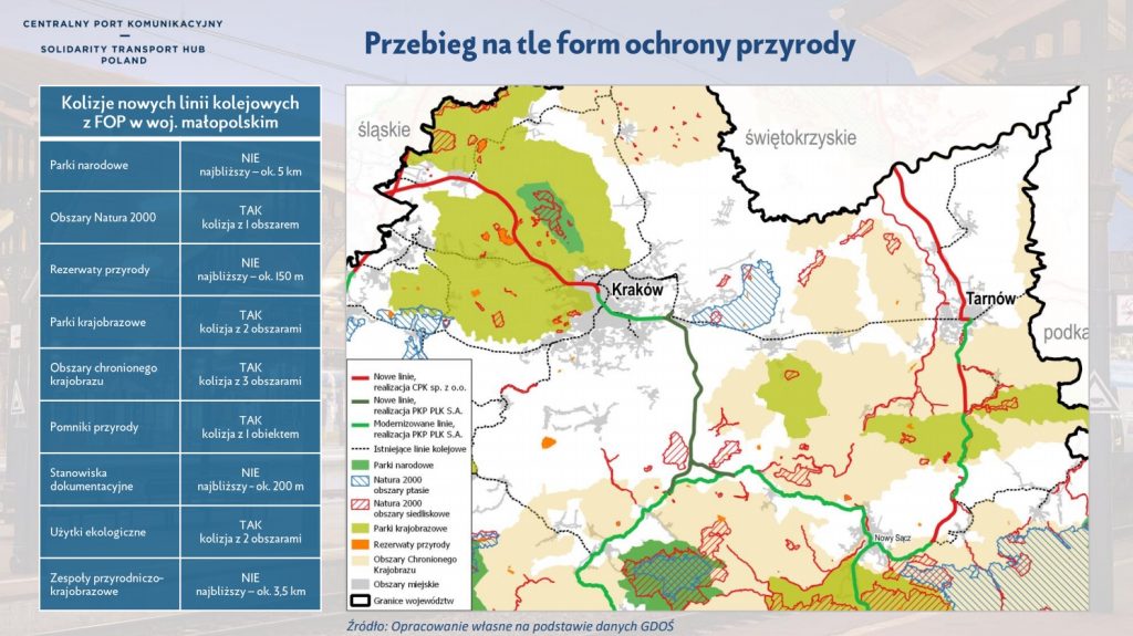 Gminy Jerzmanowice-Przeginia, Zabierzów, Wielka Wieś, Zielonki, ale także Kraków protestują przeciwko zaproponowanym wariantom przebiegu tras kolejowych prowadzącym do Centralnego Portu Komunikacyjnego. Nowe linie oznaczałyby nie tylko wyburzenia domów, ale także ingerencję w przyrodnicze walory parków krajobrazowych.