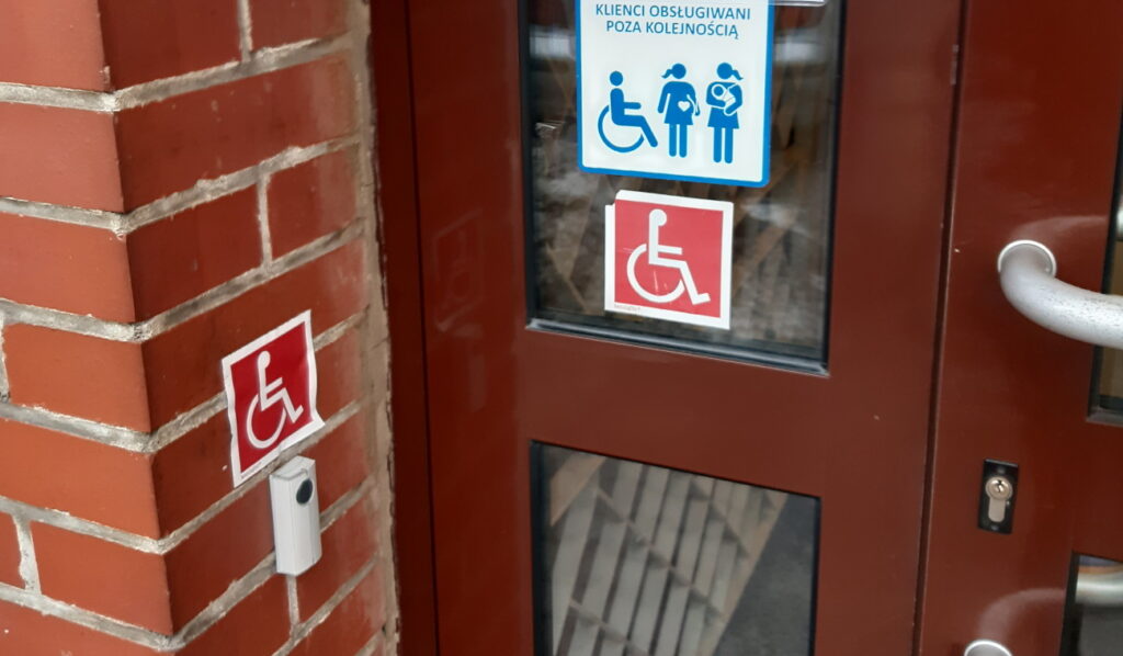 Piętro budynku przy Daszyńskiego, w którym znajduje się Urząd Pocztowy, nie ma windy. Jedynym ułatwieniem dla osób poruszających się na wózku jest dzwonek zamontowany przy drzwiach zamkniętego punktu na parterze. Naciskając przycisk osoba z niepełnosprawnościami może przywołać pracownika poczty.