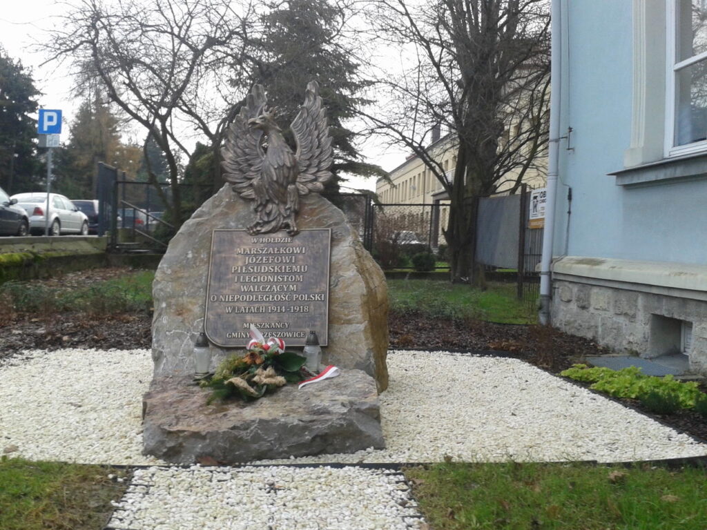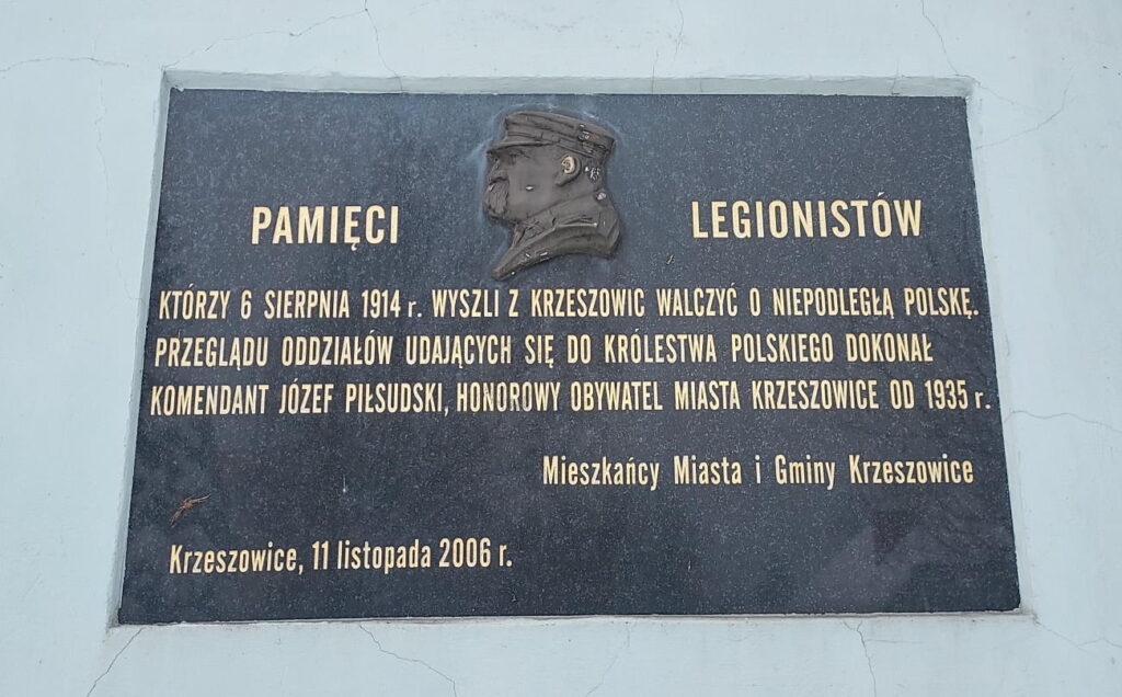 Całkiem niedawno, tuż przed budynkiem przy ulicy Krakowskiej, w którym dziś znajduje się siedziba krzeszowickiego GOPSu, stanął głaz z obeliskiem w hołdzie marszałkowi Józefowi Piłsudskiemu i legionistom walczącym o niepodległą Polskę. Nowy pomnik znajduje się dosłownie metr od budynku, na którego ścianie kilkanaście lat temu również upamiętniono legionistów Piłsudzkiego, którzy w 1914 roku wymaszerowali z Krzeszowic.