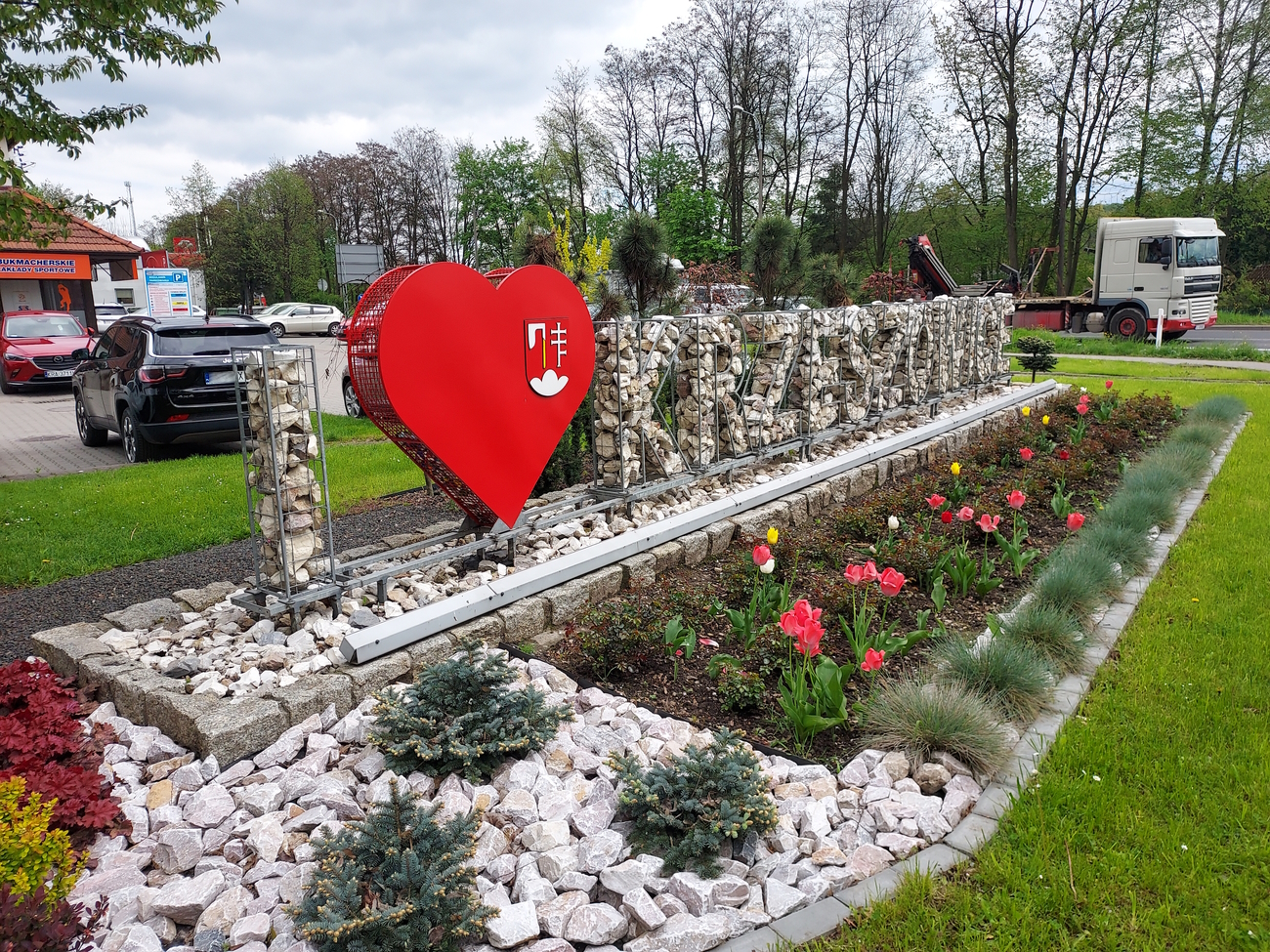 Jeśli to ma być „kamienny” symbol gminy to ten napis powinien zostać wykonany w pełni z kamienia. Nie jakieś gabiony wypełnione kamykami tylko litery wykonane z ciosanego, ciętego wapienia. A np. serce wykonane z tufy filipowickiej. Wtedy można by to uznać za symbol, znak gminy.