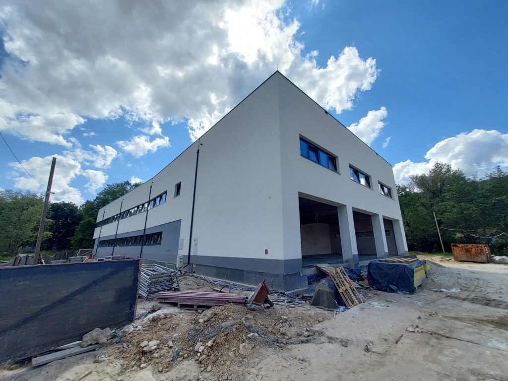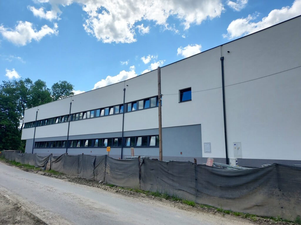 Przy skręcie do gminnej oczyszczalni ścieków w Krzeszowicach stanął okazały biurowiec. Budynek o powierzchni użytkowej 1 400 metrów kwadratowych ma pomieścić 85 pracowników gminnej spółki Wodociągi i Kanalizacja. Nowa siedziba będzie gotowa w styczniu 2024 roku.