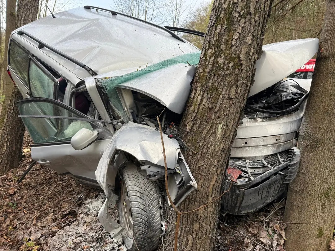 Przed godziną 18:00, z niewyjaśnionych przyczyn samochód osobowy zjechał z drogi i uderzył w przydrożne drzewo.