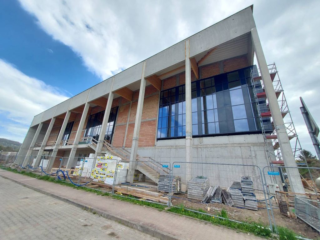 Przy Alei Solidarności trwa budowa krzeszowickiej pływalni. Mieszkańcy będę mogli skorzystać z obiektu w drugiej połowie 2026 roku.