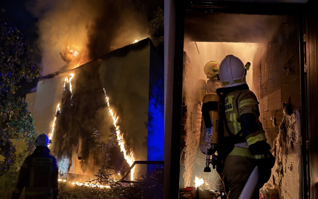 Było około 2:00 w nocy, gdy straż została zaalarmowana o pożarze budynku przy ulicy Grunwaldzkiej w Krzeszowicach. Na miejscu okazało się, że ogień zagraża także sąsiedniemu budynkowi.
