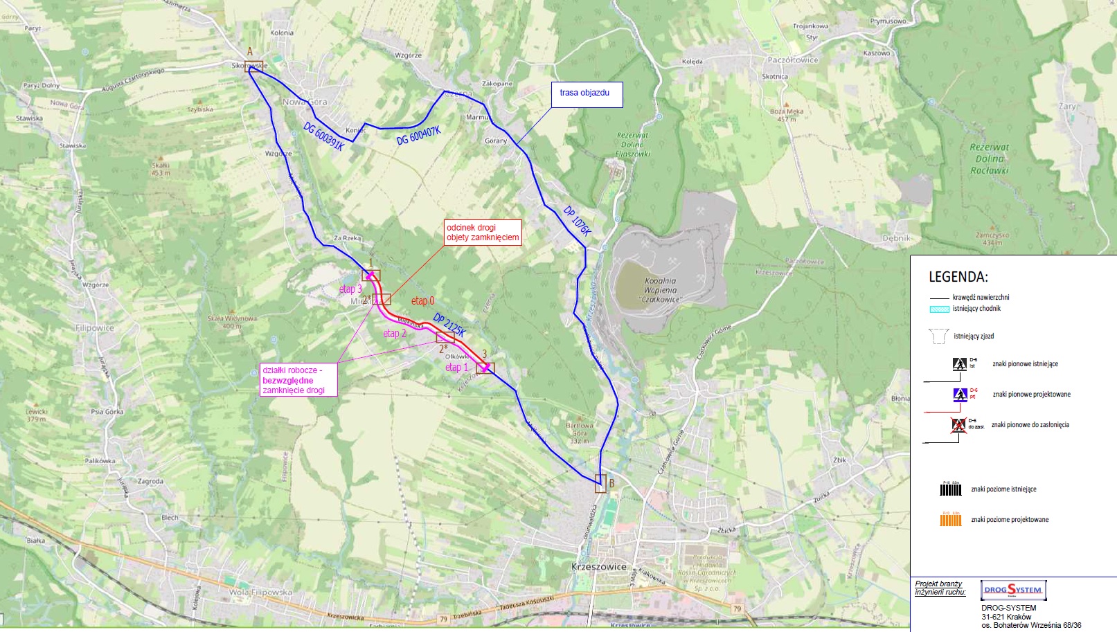 W drugim etapie prac droga zostanie całkowicie zamknięta od km 2+800 (numer budynku Miękinia 378) do km 3+160, połowy skrzyżowania przy SAG z DG600401K, przy zachowaniu wjazdu na drogę gminną. Na skrzyżowania przy terenie SAG obowiązywał będzie ruch wahadłowy kierowany ręcznie. Etap drugi będzie realizowany w dniach od 21.07.2025 do 25.07.2025.