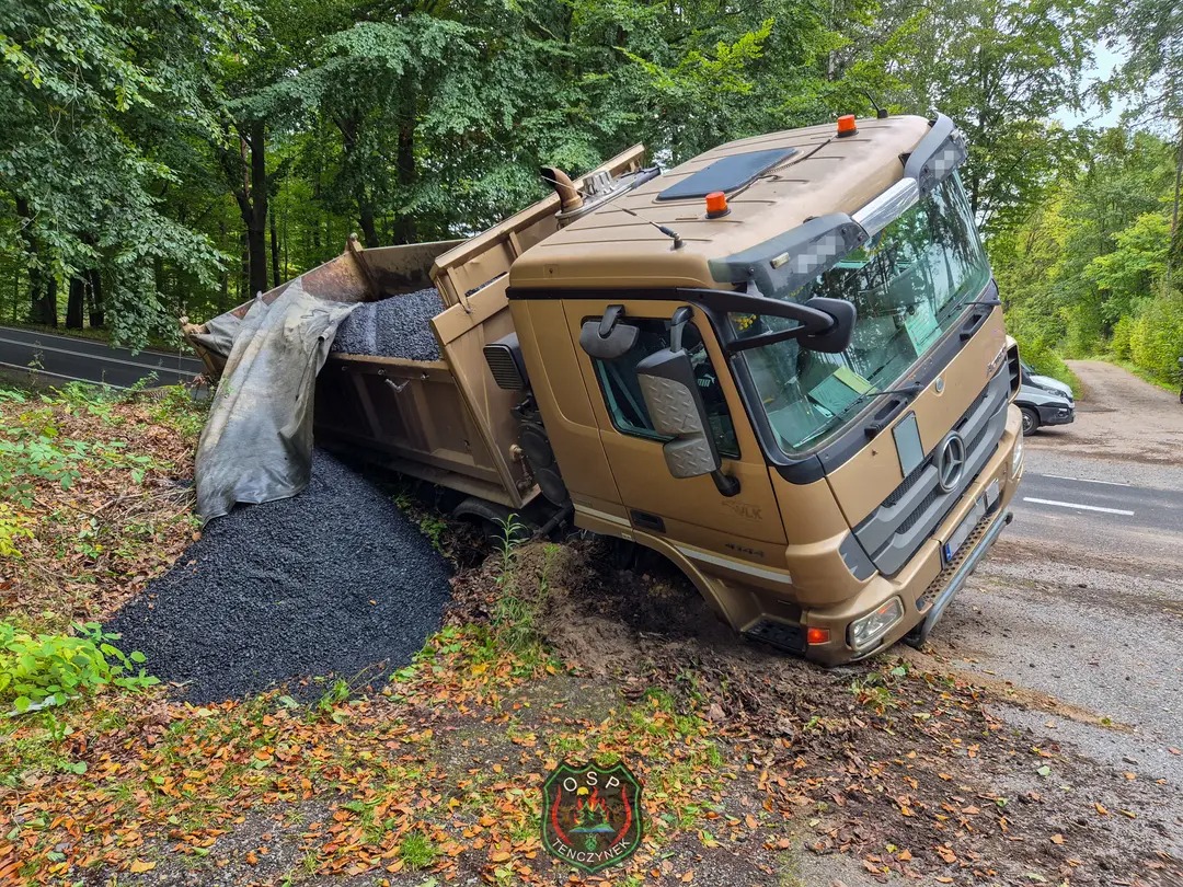 Do zdarzenia doszło na ulicy Jurajskiej, głównej drodze przez wieś. Jak informują strażacy — na szczęście nikt nie ucierpiał. Ciężarówka wypadła z drogi i wpadła do rowu, przy okazji uderzając w betonowy przepust.