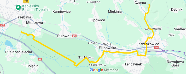 Na tej mapce jest wyrysowana trasa do Klasztoru Karmelitów w Czernej. Rzuciłem okiem na mapkę Velo Rudawa i przez Czatkowice biegnie ona wzdłuż drogi którą jeżdżą ciężarówy z kopalni. Tam powstanie jakaś ścieżka rowerowa? Czy ta trasa będzie wiodła po już istniejącym chodniku? Jakiś czas temu tam jechałem. Miejsca na jakąś ścieżkę rowerową to tam nie ma. Po chodniku można jechać od Krzeszowic do wjazdu do kopalni. Dalej nie ma chodnika ani miejsca na chodnik/ścieżkę rowerową. Czy władzom Gminy troszku nie wstyd że do jednej z większych atrakcji Gminy nie można dojść chodnikiem? I dlaczego ta trasa z Krzeszowic do Trzebini nie ma jakiejś odnogi do zamku?